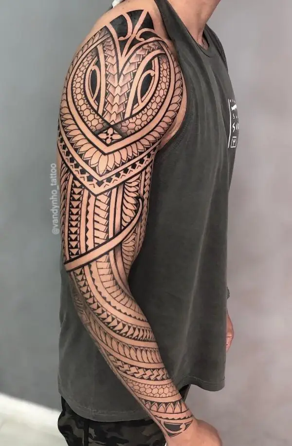 The tribal tattoo sleeve is a bold statement, a piece of art that adorns the arm with intricate designs rooted in ancient traditions. In this deep...
